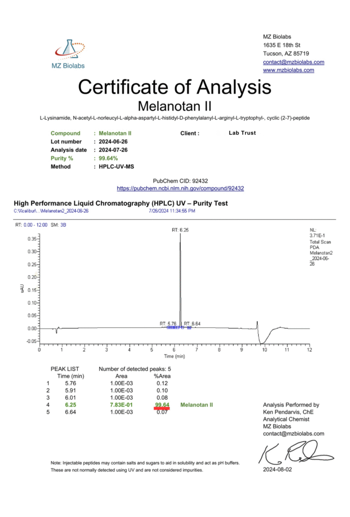 Melanotan 2 (MT-2) 10mg β Ξ±-MSH Analog Research Peptide
