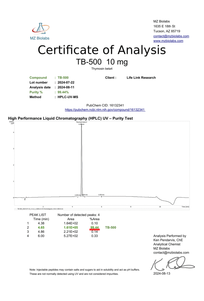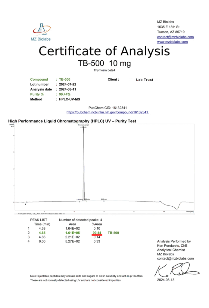 TB-500 (Thymosin Beta-4 Analog) 10mg β Research Peptide