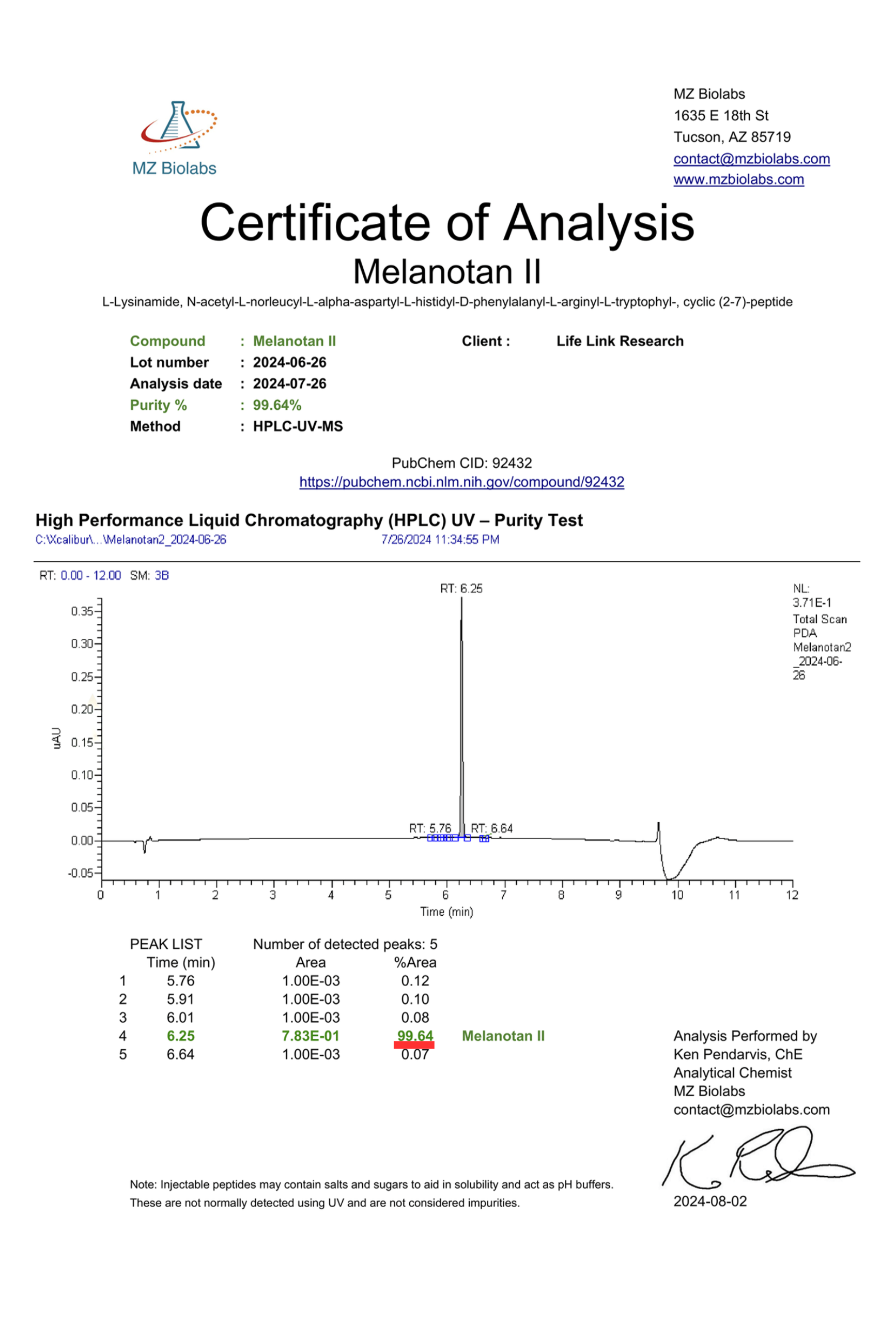Melanotan 2 (MT-2) is a synthetic analogue of alpha-melanocyte-stimulating hormone (α-MSH), studied in laboratory environments investigating melanocortin receptor signaling, pigmentation pathways, and receptor-mediated biological responses.