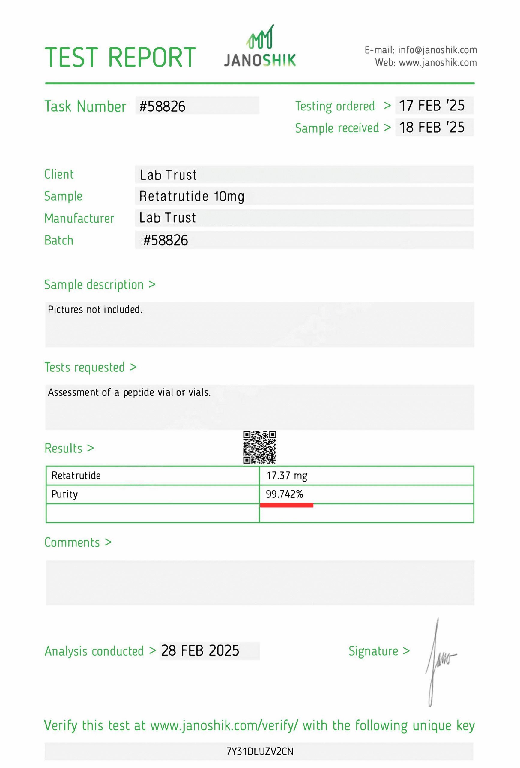 Every batch undergoes strict quality review, with routine randomized full-panel testing performed by independent laboratories to ensure analytical reliability and batch consistency.